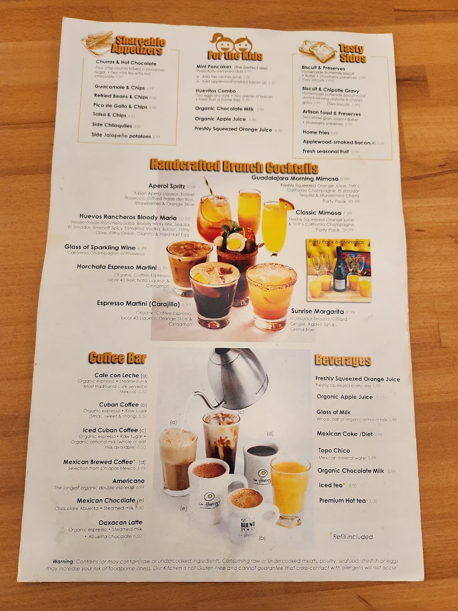 The coffee bar elevates the experience with unique options like the Oaxacan Latte and rich, sweet Cuban Coffee. For those looking to sip on something special, try the Guadalajara Morning Mimosa brunch cocktail.